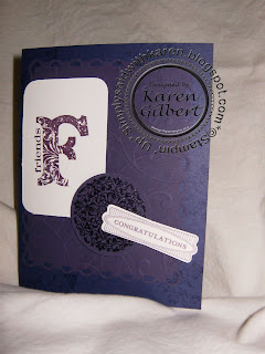 ReplyDeleteI love the perfect plum and all the embossed elements of your card. Just gorgeous Karen